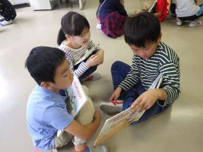 絵本の持ち方や絵の見せ方、話し方などを工夫しています。