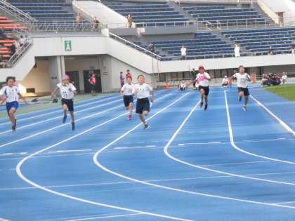本格的な陸上競技場での運動会です。競技を行う子どもたちも、スタンド席から観戦し応援する子どもたちも、みんなが夢中になり、一人ひとりにとっても思い出に残る運動会になったことと思います。