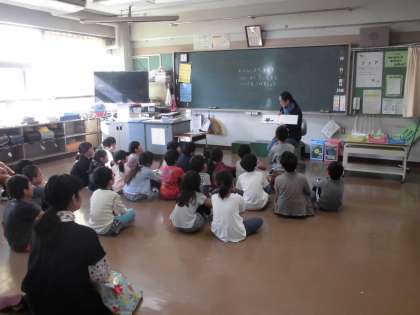 こちらは、1年生の様子です。秋らしいさわやかな気候の中、しっかりお話を聞いていました。