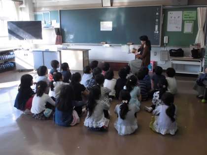 11月最初のお話しポケット読み聞かせは、1年生の3学級と、4年2組、6年1組、6年2組の6つの学級で行われました。大勢の手配ありがとうございます。