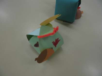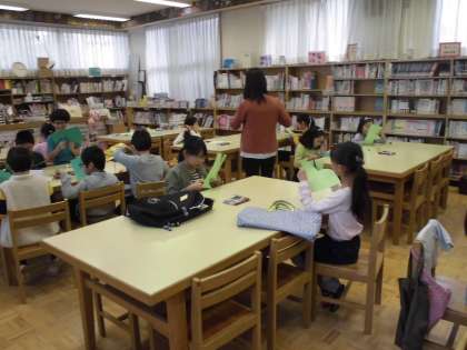 今日の図書館イベントは、読み聞かせをしていただたいた後、お土産バッグを作りました。紙を切って本体を作り、モールで取手を付けたり、周りに秋らしい飾りをしたり好きな絵を書き込んだりして仕上げました。可愛らしいお土産バッグができました。