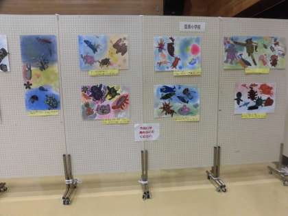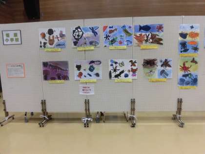 本校からは、3年生が図工の学習で製作した「でこぼこ もようの なかまたち」が出品・展示されています。