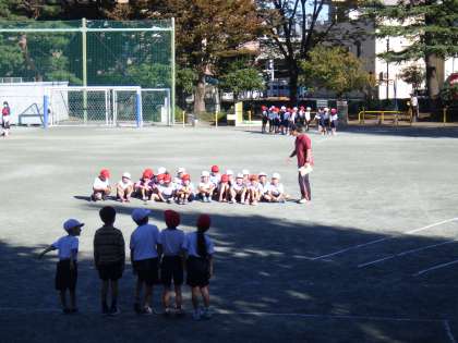 校庭の一部を舞台に見立てて、楽しく練習をすることができました。