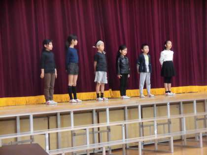 「はじめのことば」を2年生が担当しました。小学校で初めての学芸発表会となる2年生。元気と笑顔いっぱいのメッセージを会場に届けました。
