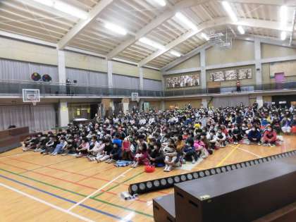 今日の日を目指して練習や準備を進めてきた子どもたち。代表委員会スローガン「みんなで協力 元気よく 最後は拍手でしめくくろう!」をめあてに、いよいよ開演です。