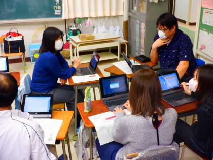 来年度からのプログラミング教育実施に向けて、まずは教職員がICT機器の使い方やツールを知り、子どもたちへ還元できる体制を整えていきます。また今後、各教科への活用方法を検討して、「主体的、対話的で深い学び」を実現できるように授業研究を行っていきます。