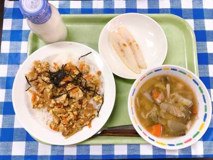 今日は、宮城県の郷土料理です。油麩とは、ふわふわした麩を油で揚げた、宮城県の特産品です。笹かまぼこも宮城県の特産品で、普通のかまぼこと違い、笹の葉の形をしているのが特徴です。芋煮は、宮城県、山形県、福島県などでよく食べられている、里芋を煮込んだ料理ですが、それぞれの地域で微妙に具材や味付けに違いがあります。宮城県の芋煮は、豚肉を入れたみそ味の芋煮です。一方、山形県の芋煮は、牛肉を入れたしょうゆ味の芋煮です。