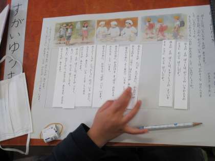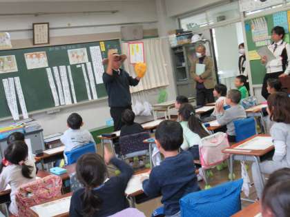 1年2組で国語「ぼうしのはたらき」の学習の研究授業が行われました。