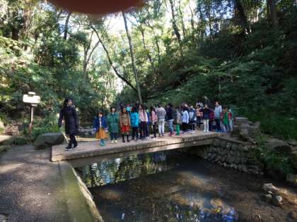 少しひんやりとした空気を感じながら、暖かい陽射しが射し込む渓谷を散策しました。