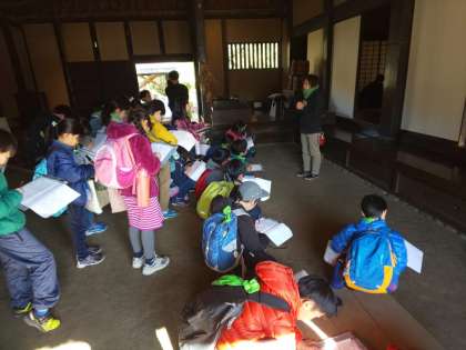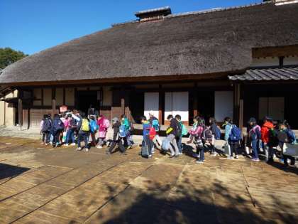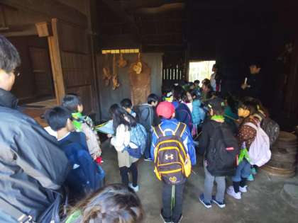 昔の住宅と人々の暮らしの様子、鍛冶屋の作業風景など、施設の担当の方々から説明していただきながら、学級ごとに見学をしています。