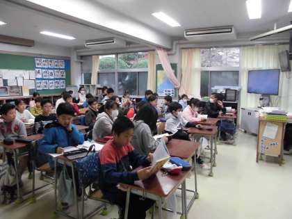 この後、学校では「楽しく学校生活を送るためのアンケート」を実施します。子どもたちの日常生活の中で、人権を侵害する行為がされていないか、もしそのようなことをされたり見かけたりしたときに、誰にどのように相談するかについてもお話しの中で伝えました。アンケートの結果を受け、必要と判断した場合には、校長・副校長が聞き取りを行います。ご家庭でも、人権について話し合う機会としていただければ幸いです。