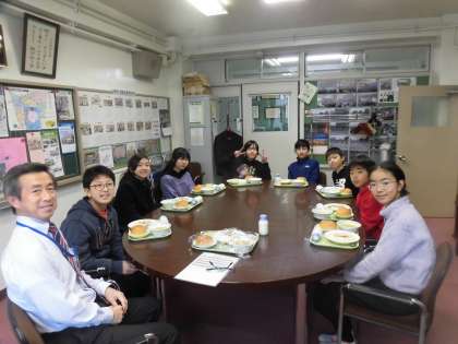 「好きなこと・好きな食べ物」をテーマに自己紹介して、会食が始まりました。それぞれの紹介に、初めて知ったことや共通していることがたくさんあり、相互理解が深まりました。また、中学生になったらやりたいこと・部活動などについても話題となり、会話が盛り上がりました。