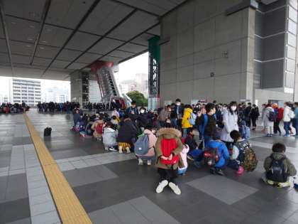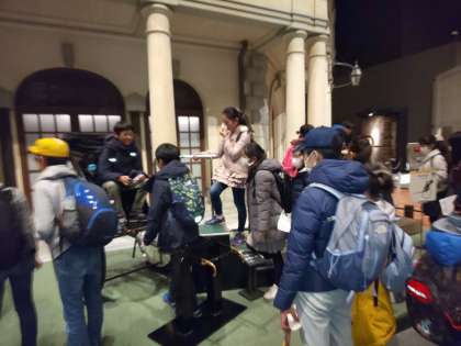 昔の東京の様子や人々の暮らしなどを、グループの見学しています。