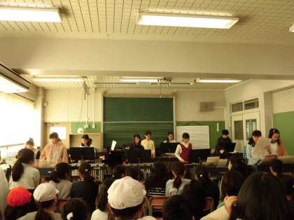 中休みに音楽室にて、音楽クラブのミニコンサートを行いました。