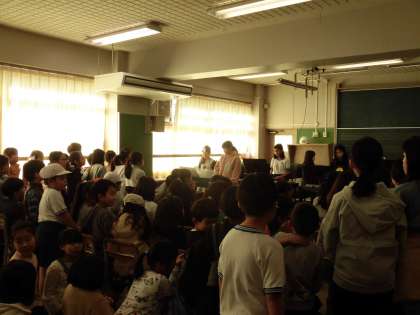 前回に引き続き、今日もたくさんの児童や先生方に見守られながら、「ホール・ニュー・ワールド」の合奏を発表しました。