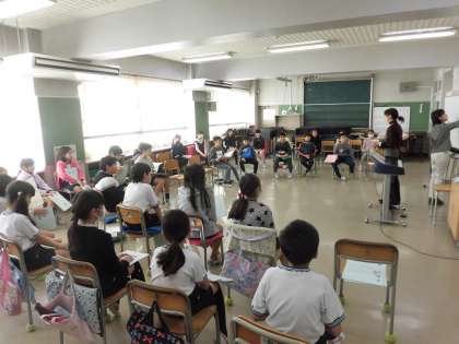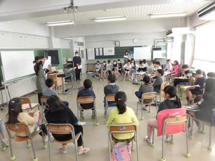今日の中休みに、笹の子班の4年班長が音楽室に集まり、2月7日(金)に行う「笹の子遊び」についての打ち合わせをしました。