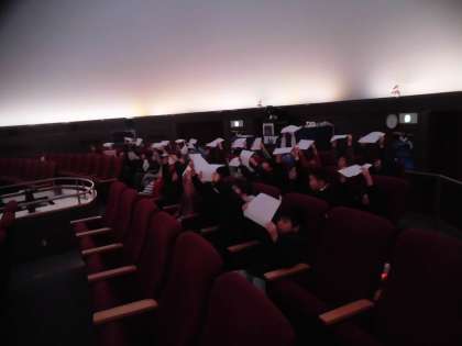 「プラネタリウム」では、星図の使い方を学ぼう!、太陽・月・星を観察しよう!、最後に、宇宙旅行をしよう!をテーマに、解説員の方の指導で学習を深めました。