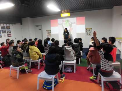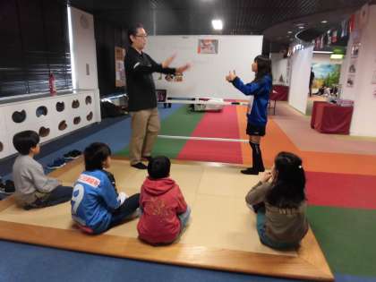 昨年9月に開館した「多文化体験コーナ」では、施設の概要について説明していただき、世田谷区の模型をつかったプロジェクションマッピングを鑑賞しました。その後、全員で英語での読み聞かせコーナーに行き2つの物語を英語で学習しました。またその後、一人ひとりが希望した活動(ブース)に分かれて、ALTの先生と英語を使っての様々な体験をしました。最後には、日本語を世界各国の言語で表現する機会もあり、英語を中心とした多文化や多言語にふれることができました。
