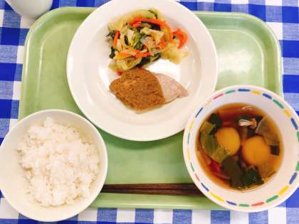今日は、まごわやさしい給食です。ま(まめ)、ご(ごま)、わ(わかめ)、や(やさい)、さ(さかな)、し(しいたけ・きのこ)、い(いも) すべてわかるでしょうか?最近は、北風が強くて寒い日もあれば、今日のように温かい日もあって、体調を崩しやすいです。うがい手洗いも大事ですが、栄養のある食事をしっかり食べて、ウイルスや風邪の菌が入ってきても負けないような強い体を作りましょう。
