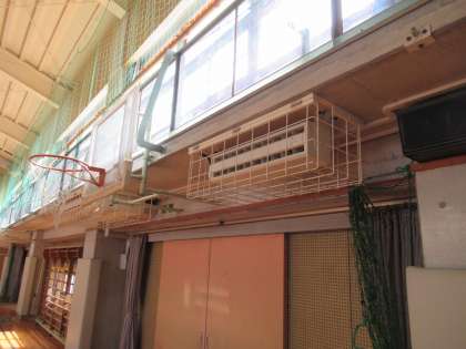 真ん中の写真は、どこでしょうか。みなさんが走ったり、ボールを投げたりするところです。実は、エアコンがつきました。みなさんが快適に学習ができる日を待っています。