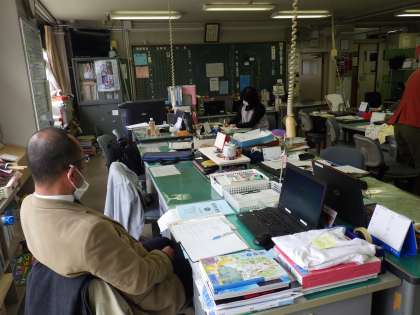 職員室ではなるべく「密」の状態を作らないように、気を付けています。