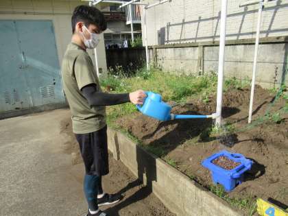 下の写真は、水をあげている写真です。土がかわいたら、水をたっぷりあげましょう。