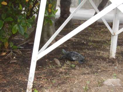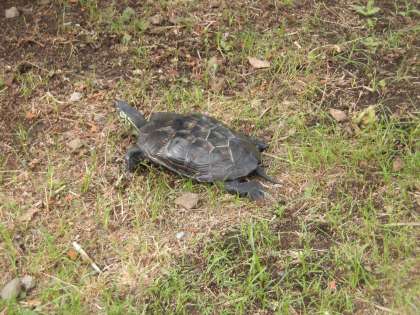 今日は、水そうのそうじ中にかめを散歩させました。ゆっくりのんびり歩いていました。