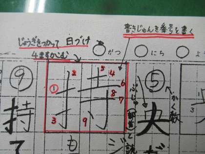 4年生では、右の写真のように漢字の書き順を書きこみます。今まで、書いた物もチェックしてみましょう。ていねいに書くことも意識して取り組んでみましょう。
