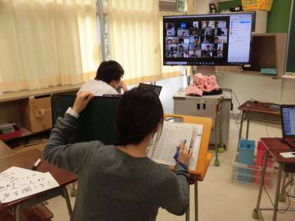 今日の午前中、5年生と6年生は、2回目の「オンライン朝の会」を行いました。