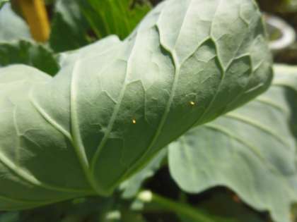 暑い日が続いていますが元気ですか。水分をとりながらすごしてくださいね。今日、学級園に行って来ました。左の写真はキャベツです。真ん中の写真は、キャベツの葉のうら側です。何か黄色くて小さいものが見えます。何だろう?なぜ、葉のうら側にあるのだろう?考えてみてください。右の写真の真ん中に動いているものがいました。何だろう?自然の中で生き物も変化しています。探してみると発見があるかも知れません。