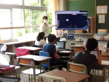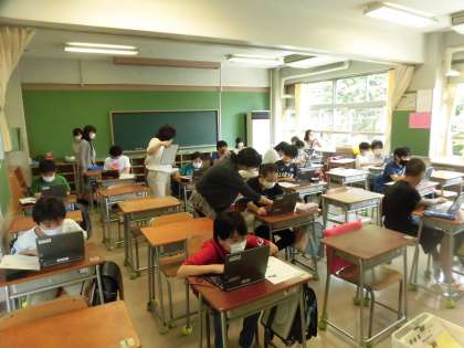 6年生は、2時間目と3時間目に学級ごとに、タブレット型情報端末を使って、ロイロノート使い方を学習しました。また、休み時間にもタブレット型情報端末を操作しながら、ロイロノートの続きに取り組んだり、他のプログラムを使って操作を楽しんだりしました。