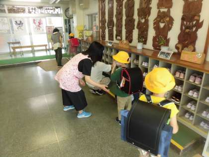 昇降口では、健康観察カードや検温の確認をして、靴箱の確認をして、教室に向かいました。