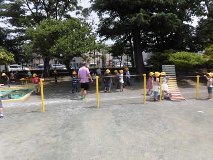初めての校庭でしたが、みんなで一緒に走ったり、ささはら富士にのぼったり、ウサギを観察したり、仲よく過ごしました。