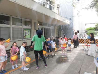 教室に入る前には、昇降口に設置してあるミストシャワーを浴び、涼しさを感じてもらいました。そして、手洗いをし、トイレや水分補給をして、3時間目の学習に取り組んでいます。