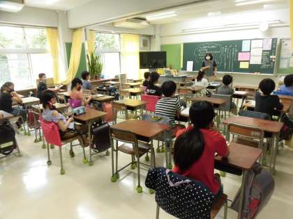 12時35分から各学級で、出席と健康状況の確認を行い、1時間目の活動を進めています。学校での過ごし方や安全な登下校の仕方の確認と、家庭学習の成果物の確認などを行い、新しい教室での5年生の学校生活がスタートしました。