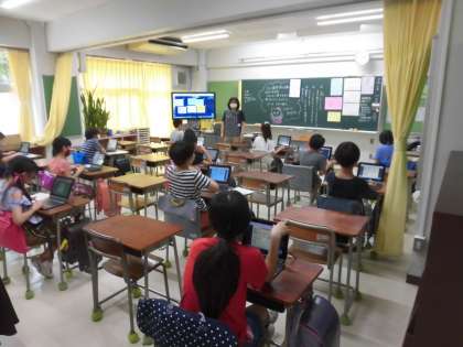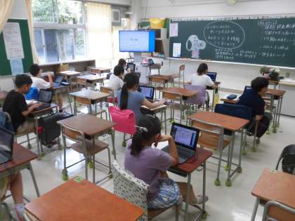 今日の5年生は、オンライン学習の練習でロイロノートに取り組みました。