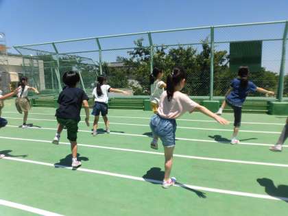 3時間目に、体育館と屋上に分かれて体育を行いました。