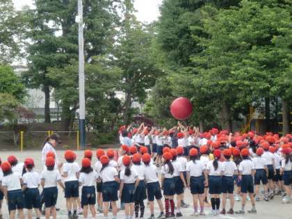 今日1時間目は、運動会の全体練習を行いました。入場行進の練習に続いて大玉送りの練習を赤白に分かれて行いました。応援合戦とともに、紅組、白組の1年生から6年生までが1つになれる競技です。その結果は・・・ 本番をお楽しみに!!!