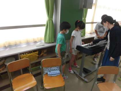 今日の5年生は音楽の学習をしました。日本の音楽ならではの旋律を考え、オルガンで順番に練習しました。