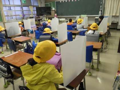 人数が半分なのでパーテーションも半分ですが、それでもちょっと視界が狭くなってしまうようです。来週からは児童の実態に合わせて、パーテーションの使い方を工夫していきます。