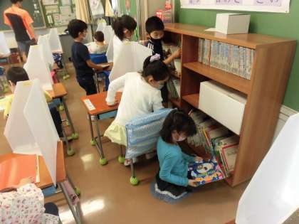 担任の先生による読み聞かせを聴いたり、学級図書から自分で選んで本を読んだり、本にふれる活動を、静かに楽しんでいました。