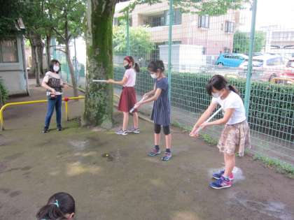 理科では、「空気と水」の学習を進めています。空気鉄砲に、空気の代わりに水を入れてみたら・・・あれ??