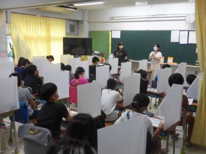 「I'm fine.」「I'm happy.」「I'm hungry.」などと、笑顔で返していました。