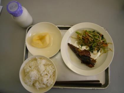10月29日火曜日の給食は、ご飯、さんまの松前煮、りんご、野菜のごまあえ、牛乳でした。さんまの松前煮の作り方をご紹介します。しょう油、砂糖、酢、酒を混ぜ合わせ、角切り昆布、しょうがをすりおろしたもの、にんにく、ねぎとともにさんまを入れて煮ました。落としぶたをして、身くずれしないように気をつけて2時間以上コトコトと煮たので、骨まで柔らかくなりました。