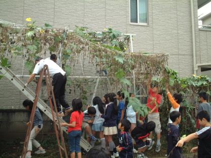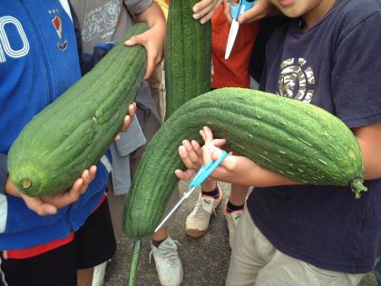 実りの秋。理科の教材として育てていたへちまやひょうたんの実が今年もたくさん実りました。へちまは、いくつかを残して、取りました。ひょうたんもたくさん取りました。へちま、ひょうたん、稲の栽培等では、大変お世話になっているボランティアの先生がいらっしゃいます。子供たちもうれしそうに育った実をとっていました。