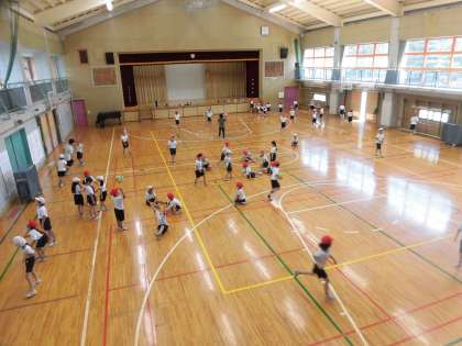 中休みや昼休みには、子どもたちは、学年で割り当てられた校庭・体育館・校舎屋上で過ごしました。これは、耐震補強工事のため校庭の三分の一ほどが使用できないためです。