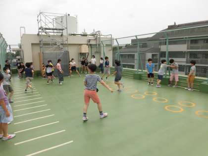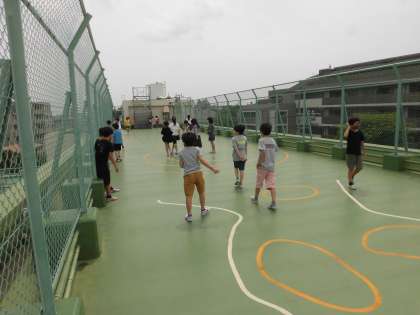 「わー!」と叫びながら元気に追いかけっこをする5年生たちのパワーに圧倒されました。