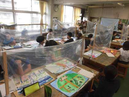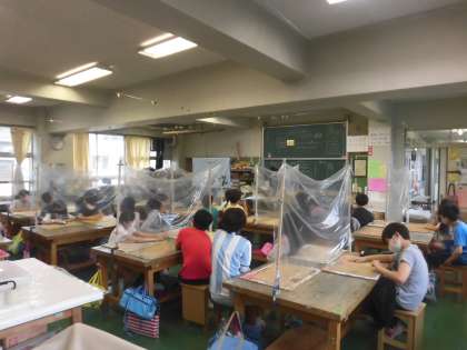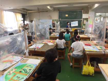 今日の1,2時間目に5年1組は、図工で鑑賞をしました。