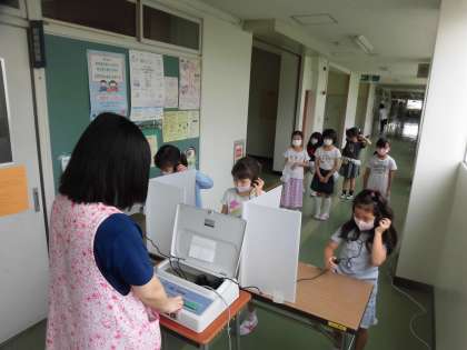 今日の1・2時間目には、2年生の聴力検査を行っています。