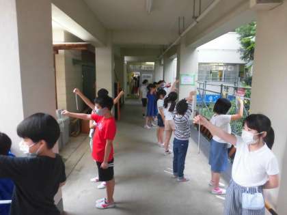 7/9 4年 みんなで並んで何を見ているでしょう?